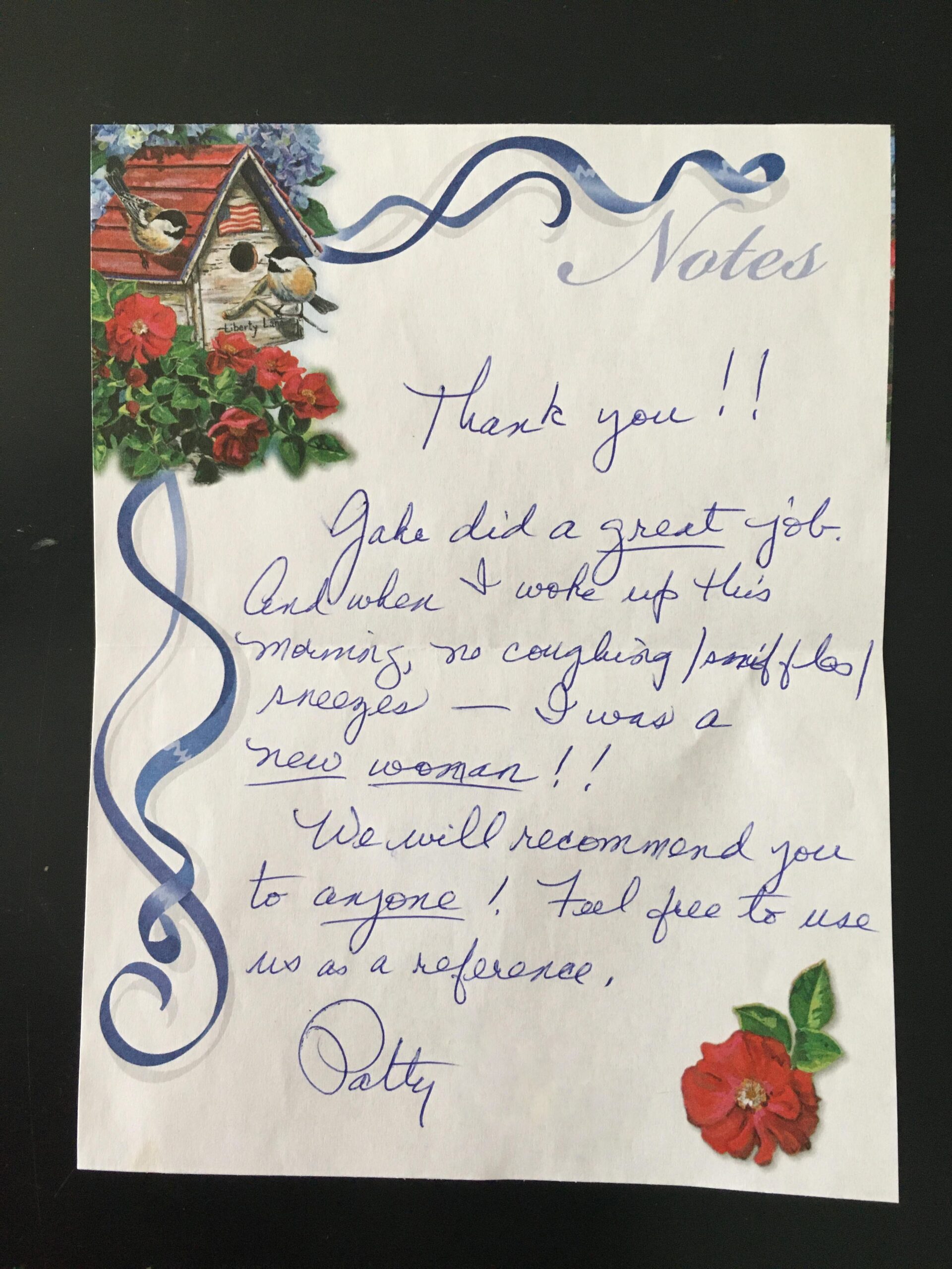 Thank you Dan for the outstanding duct cleaning provided at the most recent property you serviced! We appreciate your consistent excellence in duct cleaning as well as accommodating our scheduling needs. We would not even consider any other duct cleaning company to address our personal and business properties!